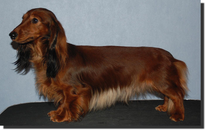 Sundsdal's Toscana is our second bitch from Sundsdal's kennel in Denmark. She is the only bitch after Sundsdal's Rapunzel, an extraordinary well-qualified longhaired bitch. Toscana was shown a lot in Germany and Denmark as junior. She got Excellent and BOB the times she were shown.